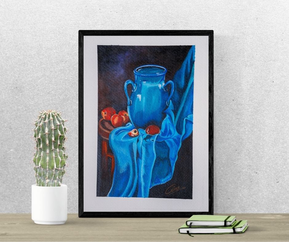 Discover this charming original painting of a blue pot, meticulously created on an A4 sheet using vibrant acrylic colors. Crafted by talented artist Celine Ekka, this unique artwork captures the beauty of everyday objects with artistic flair. Perfect for adding a splash of color and creativity to your space, each piece is a one-of-a-kind masterpiece that reflects the artist’s passion and skill. An ideal choice for art enthusiasts and home decorators alike.