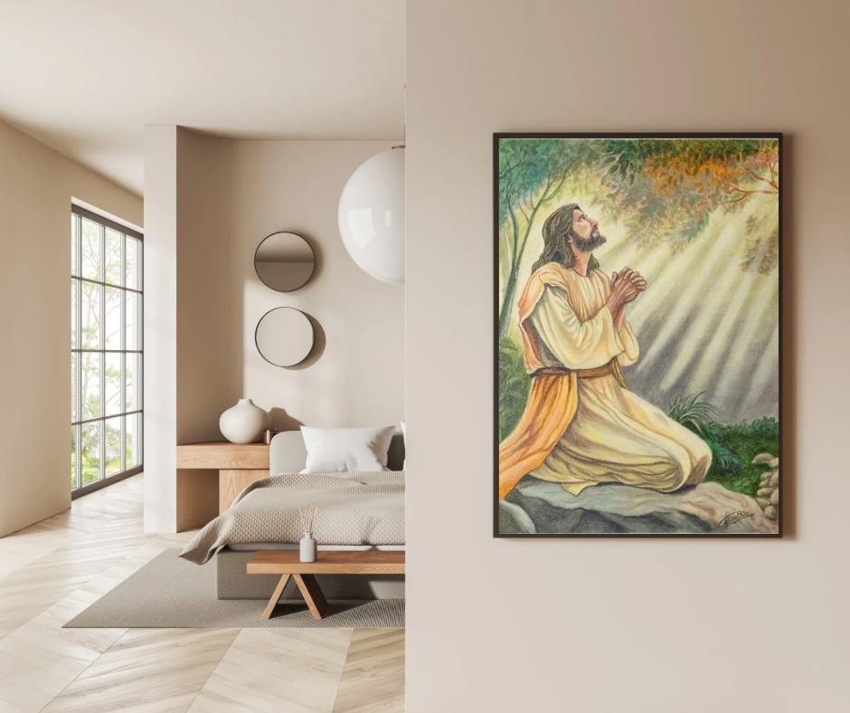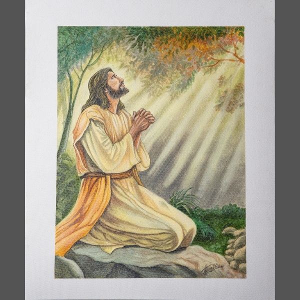 Experience a moment of divine serenity and devotion with this original painting titled “Jesus Praying to His Father”, created by renowned artist Celine Ekka. Capturing a deeply spiritual and heartfelt scene, this artwork beautifully portrays Jesus in prayer, inviting reflection and peace into any space.